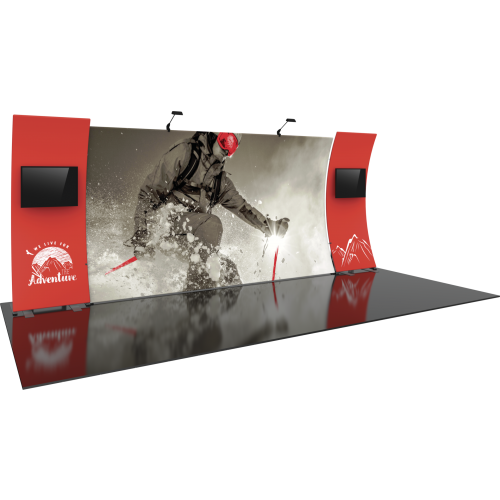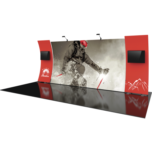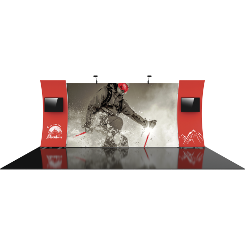 - Two monitor kiosks featuring two medium monitor mounts, can hold 32″-55″ monitor and max weight of 40lbs