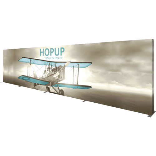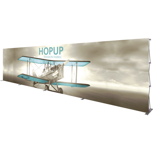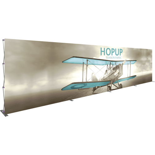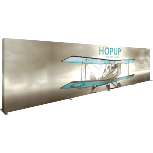 There is no mistaking the impact of the Hopup™ 30ft wide (12 quad x 3 quad) portable fabric pop up display!