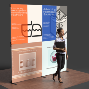 Sleek and “EZ”, our tension fabric systems are a great alternative to standard backwall displays. Quickly assembled in just 5 minutes, slide the tubes together to make the frame and lock in place with a push button snap. Then, simply pull the pillowcase-like graphic over the frame and zip it shut. The zipper, hidden from view, tightens the stretch fabric beautifully displaying your image. Disassembled, this lightweight frame and graphic fits inside its included bag.