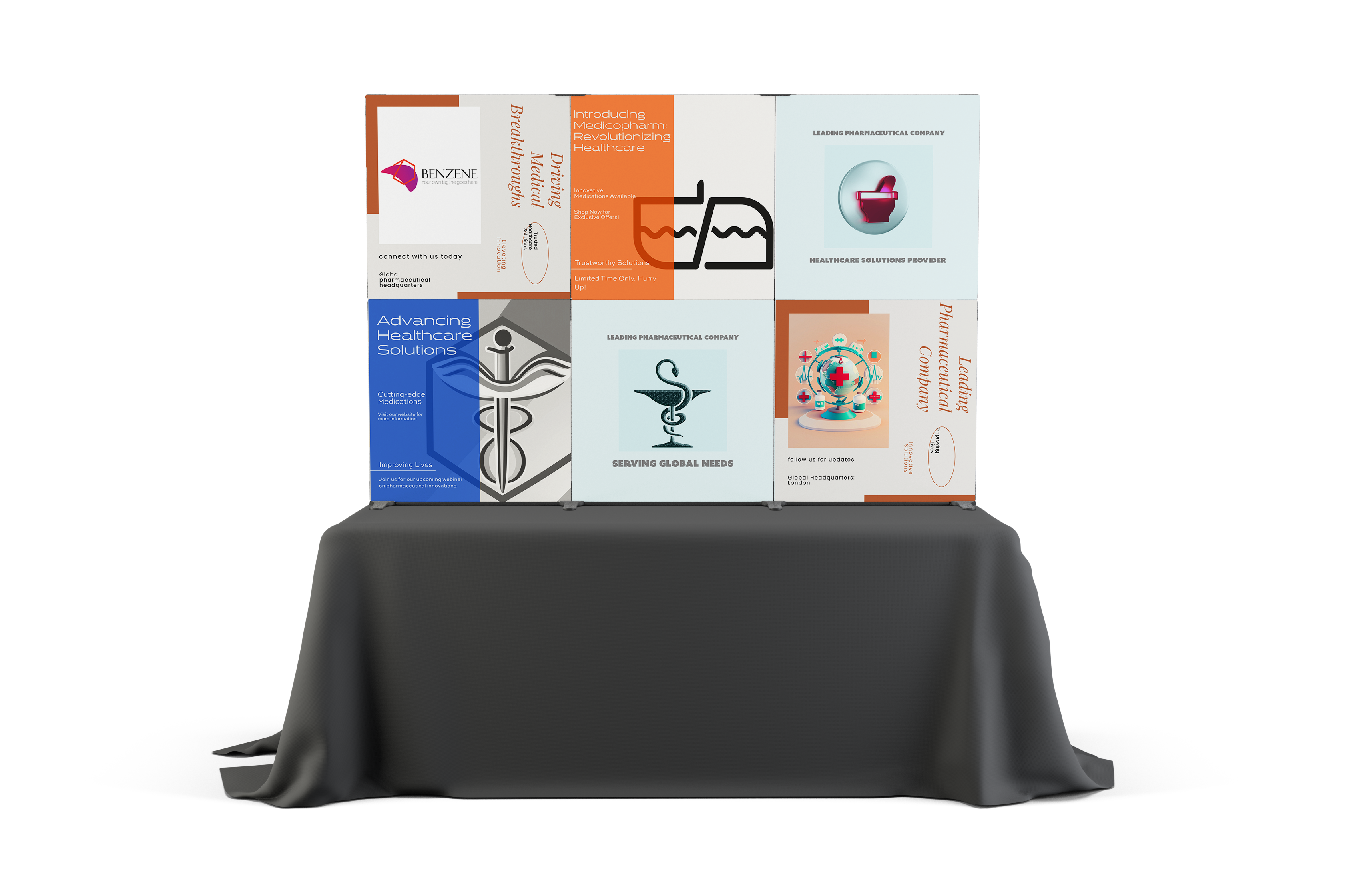 The key is that all these displays can be made from this one kit, of course. Talk about Flexibility: it the best investment your company can make. And yes, once you have the Flextile you can order new graphics for any or all tiles