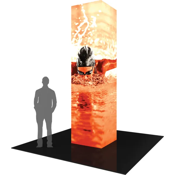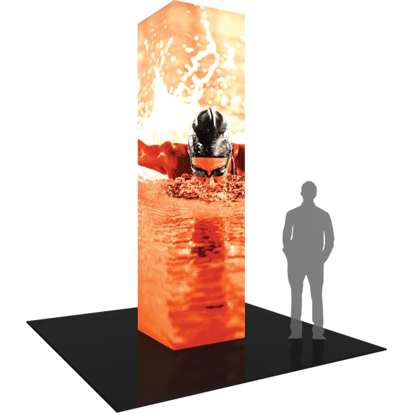 The Formulate® Backlit Tower 01 is an illuminated 12ft tall, 3ft square structure that will transform any environment through form, fabric and lighting. Perfect for inclusion in a tradeshow exhibit, to cover columns in an exhibit hall and for events and retail displays. The Formulate Backlit Tower 01 combines the latest developments in fabric printed technology with aluminum tube frames and interior LED lighting to add dimension, decor and sculpture. Mix and match with other Formulate architectural structures, backwalls, counters and kiosks to create your own display. Captivate your audience with an illuminated fabric tower!