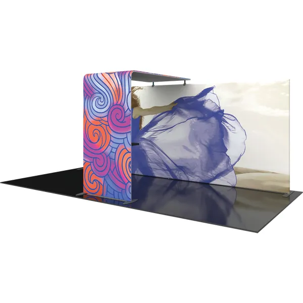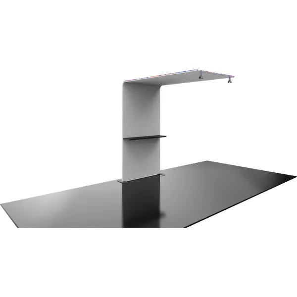 The Formulate® Master Backwall Accent 05 is an ideal dimensional accessory to connect to a Formulate Master 20ft or 30ft straight backwall that is being used in a Peninsula or Island exhibit space. It features a simply tube frame, pillowcase fabric graphic canopy, table top and connects easily to create the appearance of one seamless display.