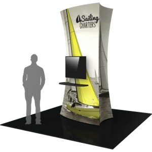 – End caps each hold a 35″W x 57″H SEG push-fit fabric graphic, black liners on inside