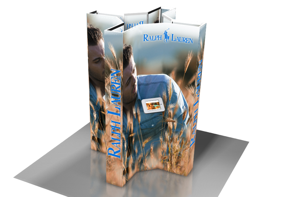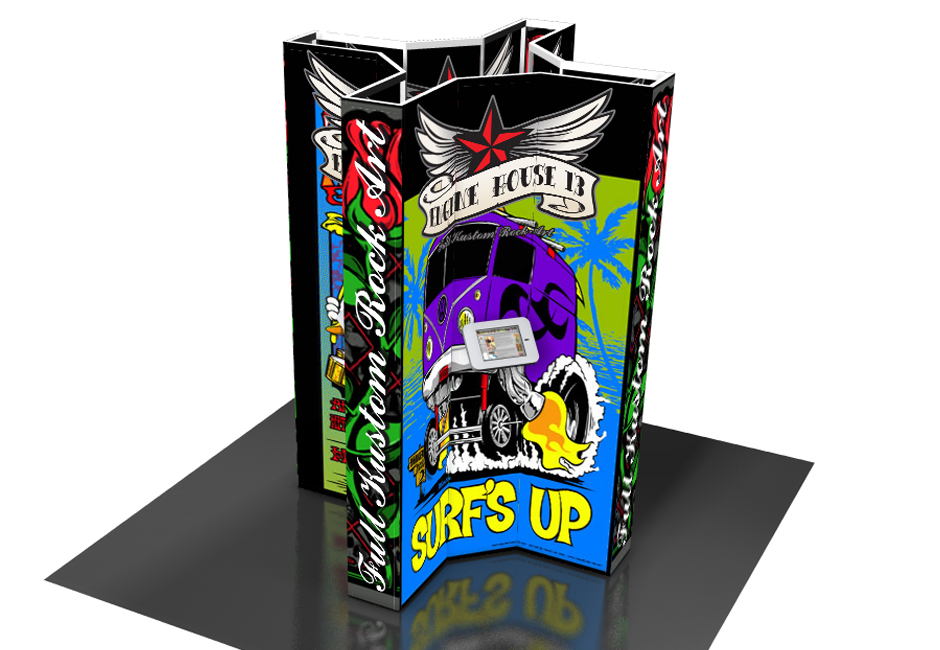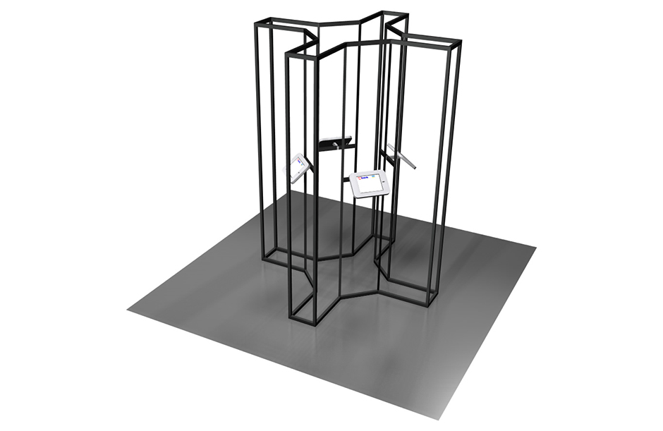 - 78.75″w x 78.75″d x 96″h Kiosk with graphic (rigging required)