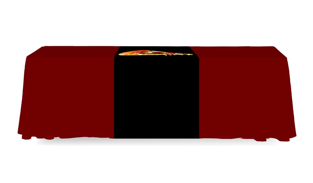 Our Table Runners are custom printed Full-Color Runners and have full-length front and back sides.  Available in widths of 2ft, 3ft, 4ft, and 5ft, just ask for your desired width for that particular pricing.
