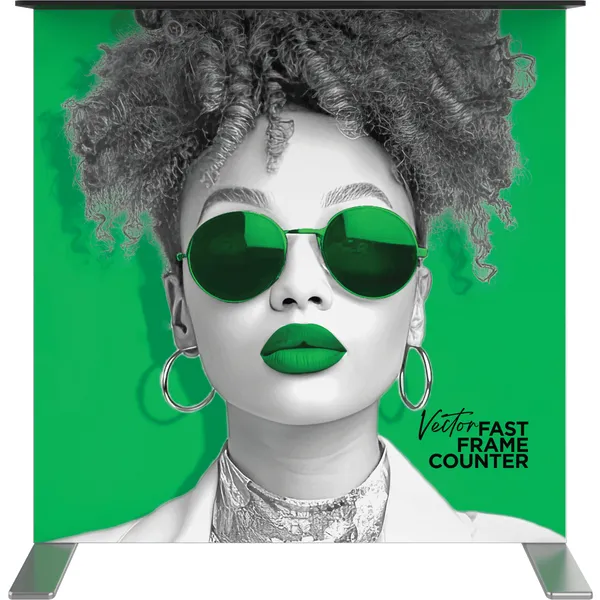 The Vector Fast Frame™ Backlit Counter is an illuminated, collapsible counter that delivers a vibrant pop to branding and messaging. The collapsible frame has LED lights pre-attached to the left and right sides. Assembly is so easy! You literally expand it, add a support pole, put the graphic on the front and back of the frame and plug it in. Not only is it easy to assemble, it is extremely portable, packs down tight into a convenient rolling carry bag for travel and storage. The counter is finished with a laminated countertop for a sleek appearance. Vector Fast Frame Backlit Counter requires no tools for assembly!